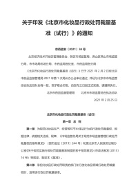 关于印发《北京市化妆品行政处罚裁量基准(试行)》的通知