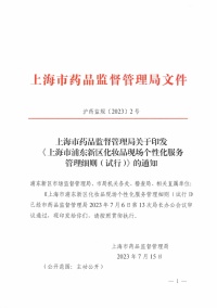 上海市药品监督管理局关于印发《上海市浦东新区化妆品现场个性化服务管理细则(试行)》的通知