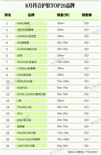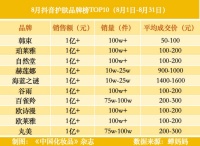 2025-8月抖音护肤:彩妆香水TOP20品牌及商品销量榜