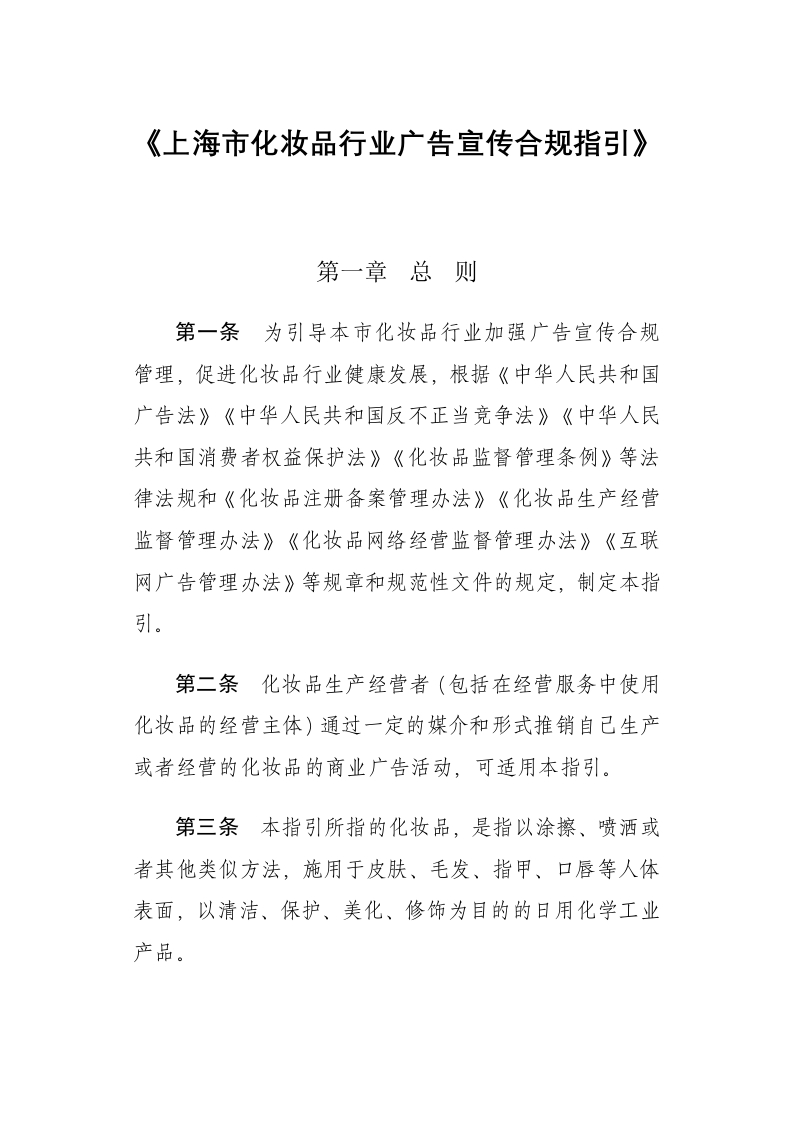 上海市化妆品行业广告宣传合规指引