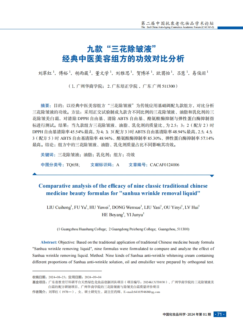 首页原料成分文献学术研究2025九款“三花除皱液” 经典中医美容组方的功效对比分析