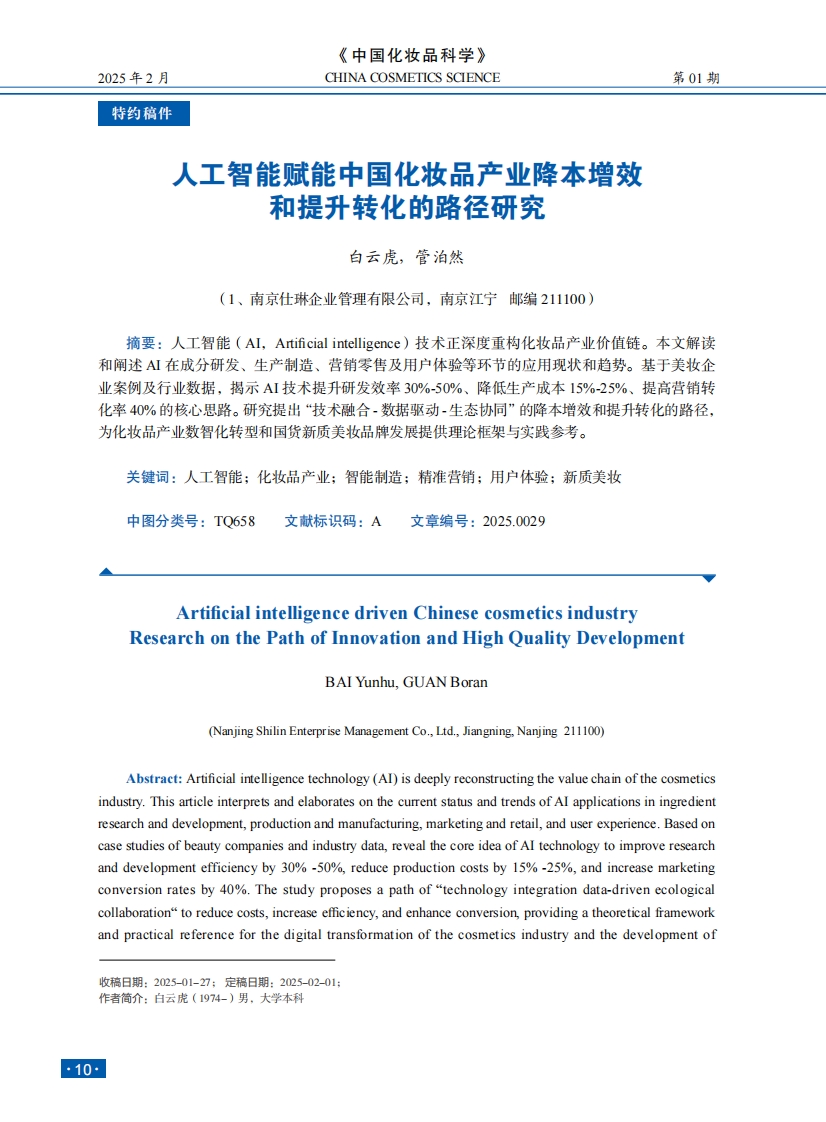 2025人工智能赋能中国化妆品产业降本增效和提升转化的路径研究