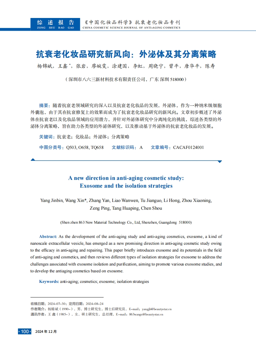 首页品类分类抗衰抗老抗衰老化妆品研究新风向:外泌体及其分离策略