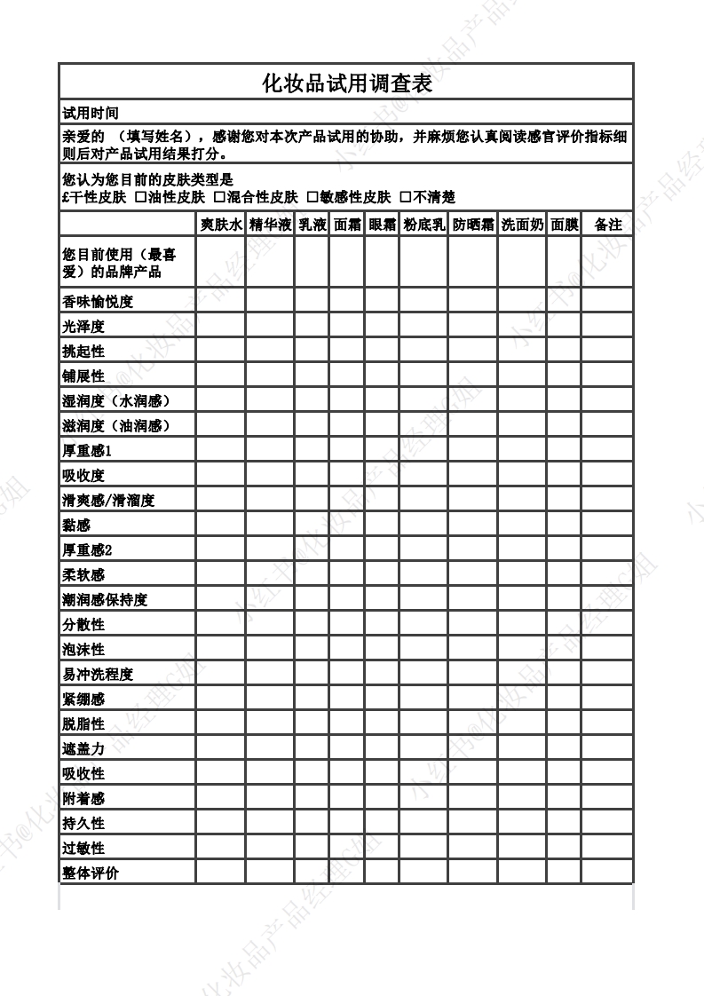 首页产品经理产品开发资料产品开发资料综合产品开发-化妆品试用调查表