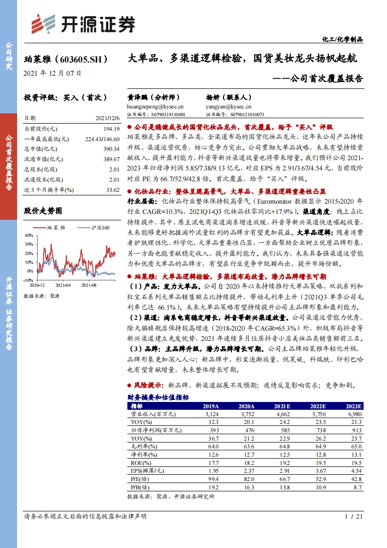 珀莱雅首次覆盖报告:大单品、多渠道逻辑检验,国货美妆龙头扬帆起航-开源证券-2021