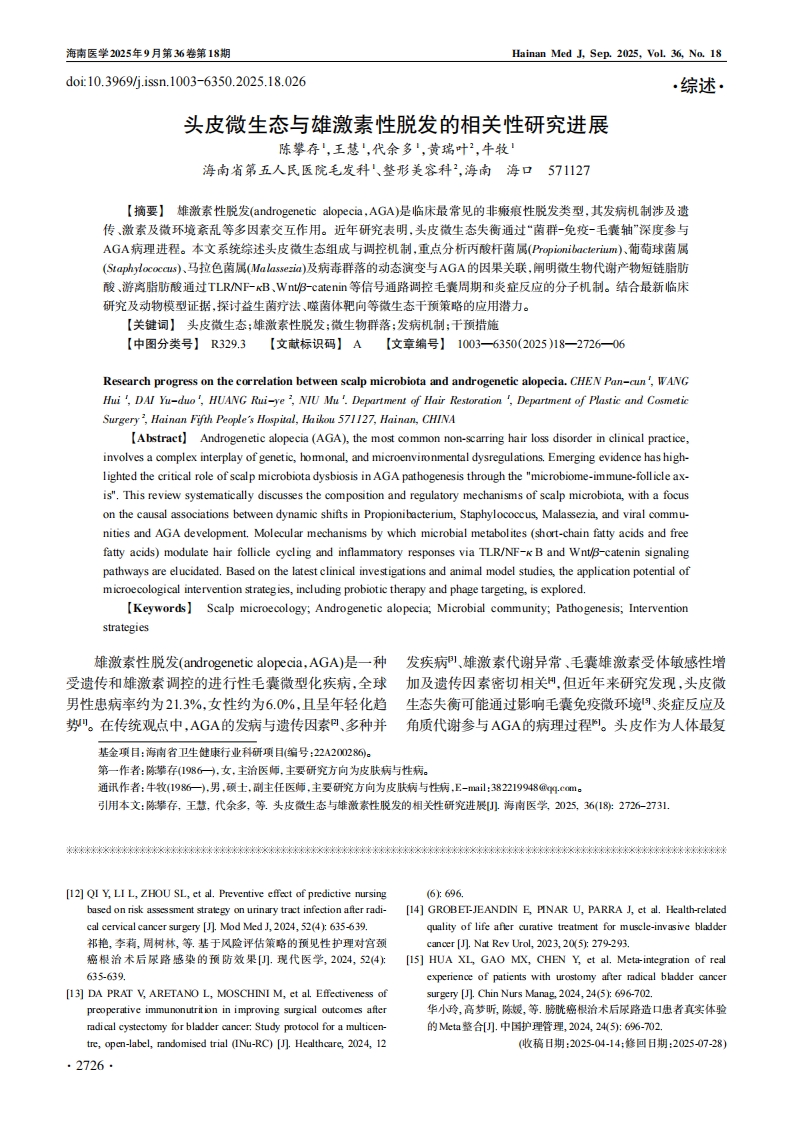 头皮微生态与雄激素性脱发