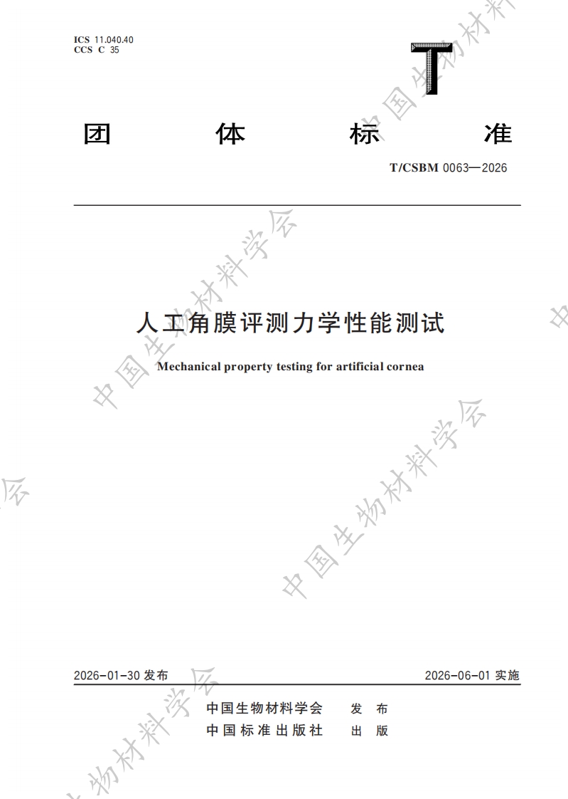 首页原料成分团体标准TCSBM 0063-2026 人工角膜评测力学性能测试