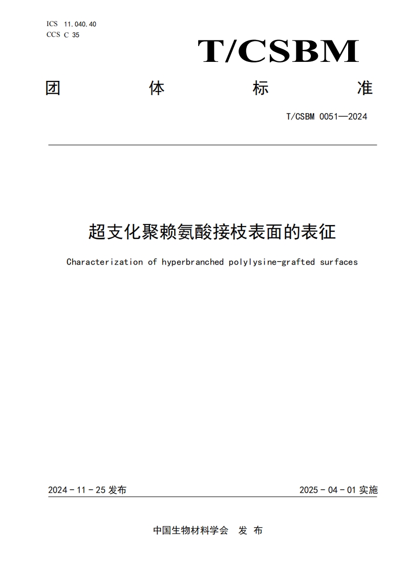 TCSBM 0051-2024超支化聚赖氨酸接枝表面的表征