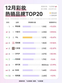 2025年12月彩妆护肤热销品牌TOP20